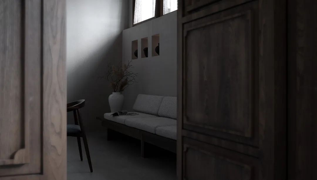 空間有時更像一座橋梁,建立起環境與人文的密切聯系。半入的微光將空間純粹化,此時的浮躁與喧囂好似無處遁形,與深邃而神秘的陰影相輔相成,構成凝練的幾何形式感。