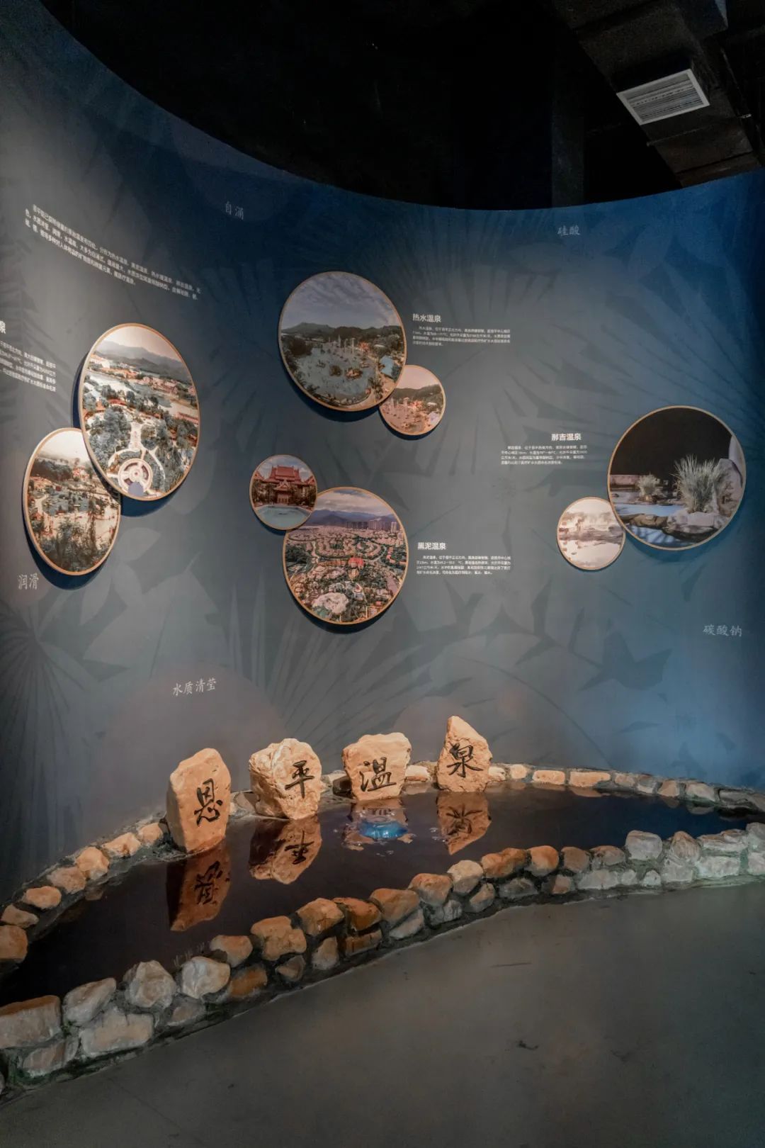 本展區展示恩平得天獨厚的自然資源,與其孕育出的厚重文明。山明水秀單元,以藝術畫的手法展示恩平的山水,結合圖文展板,詳細介紹君子山、大人山等內容。場景復原恩平溫泉,墻面采用水珠背景,展示溫泉具有豐富礦物質元素和微量元素,圓形展板展示熱水溫泉、黑泥溫泉等詳細內容。史前遺存單元,復原恩平史前生活場景,結合圖文展板,出土文物等資料,展示三官山遺址、白虎頭嶺遺址等內容,展示史前恩平人的生活場景。為了讓觀眾更直觀了解各時期的恩平歷史,展區按照秦朝至民國時期13個歷史時期,在LED大屏幕上設置13個屏幕觸點,觀眾只要點擊相應的觸點,就會彈出文字內容,既創新了展示方式,又增加了觀展樂趣。