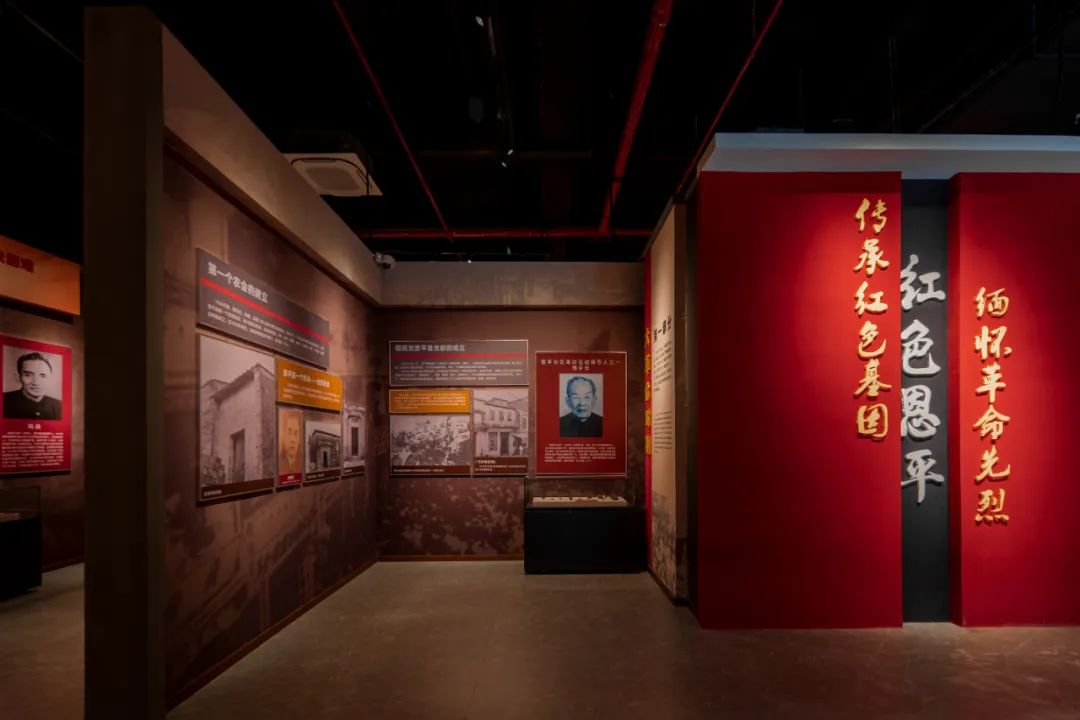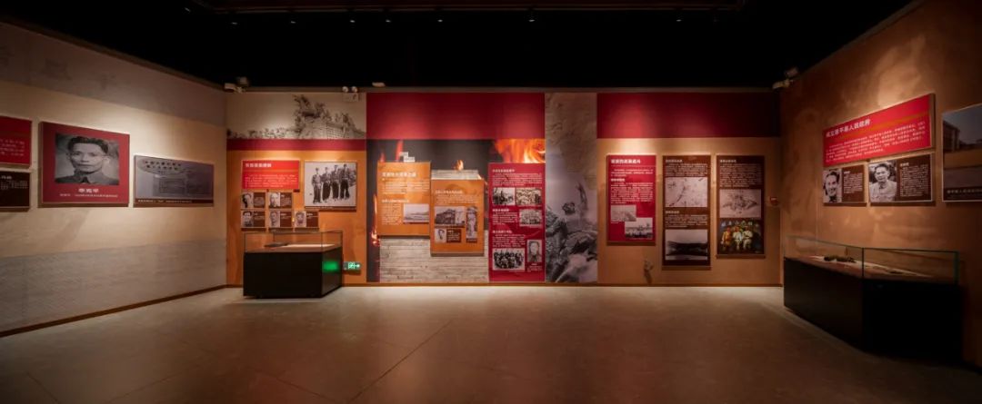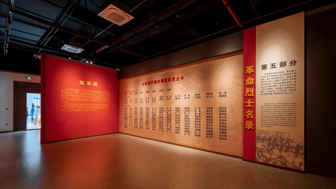 展區以黃色為主色調,弧形墻壁并篆刻烈士名錄,象征著烈士們忠心向黨的紅心,設計莊重肅穆。