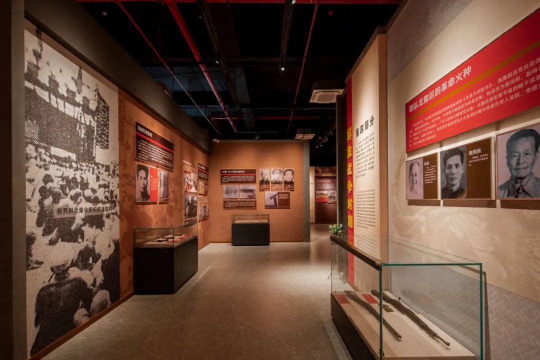 紅色恩平展廳以紅色、熟褐色為主色調,象征革命的發展和成就。以恩平人民在黨的領導下,進行頑強革命斗爭為主線索,將本展廳分為序廳、第一部分:大革命時期、第二部分:土地革命時期、第三部分:全面抗日戰爭時期、第四部分:解放戰爭時期、第五部分:革命烈士名錄。