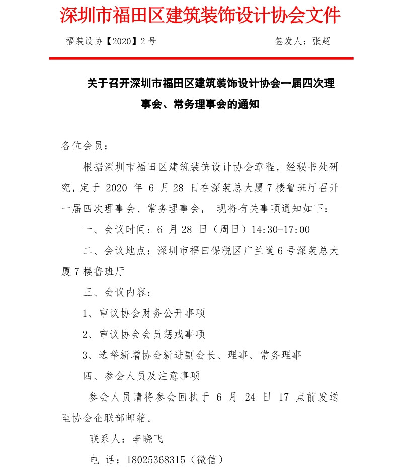 關(guān)于召開深圳市福田區(qū)建筑裝飾設(shè)計協(xié)會一屆四次理事會、常務(wù)理事會的通知