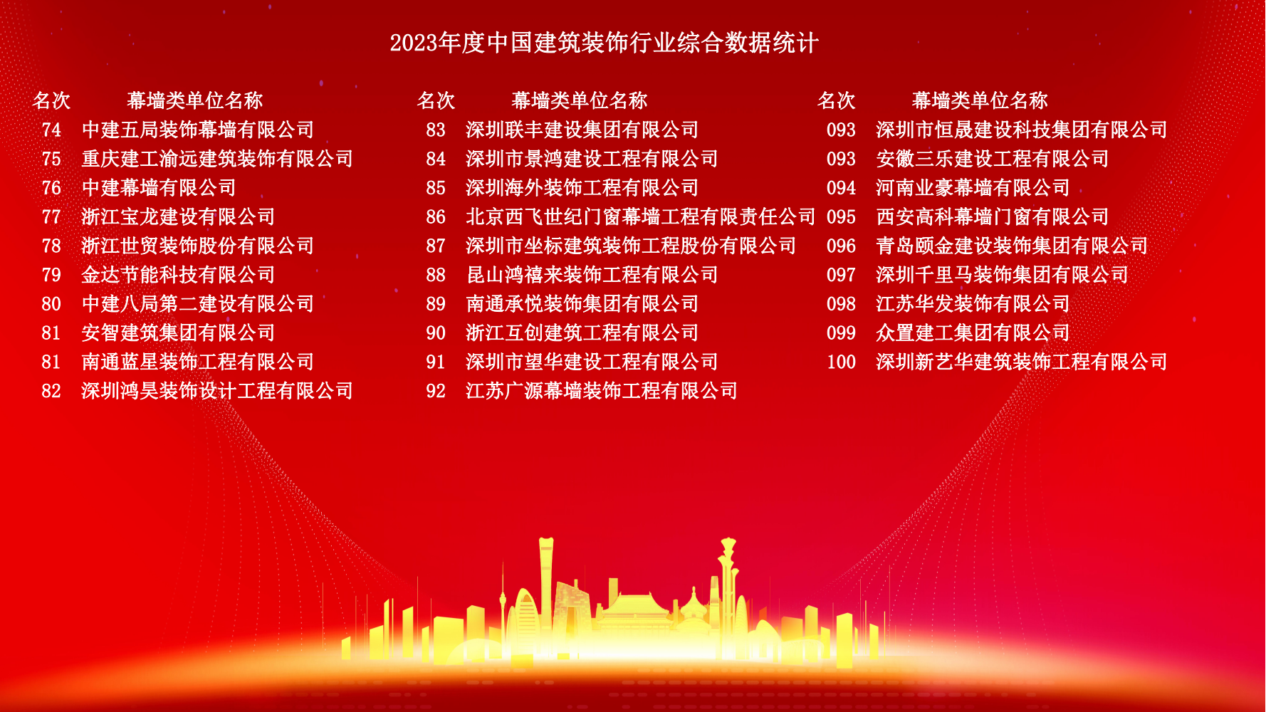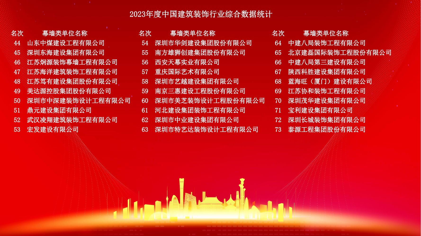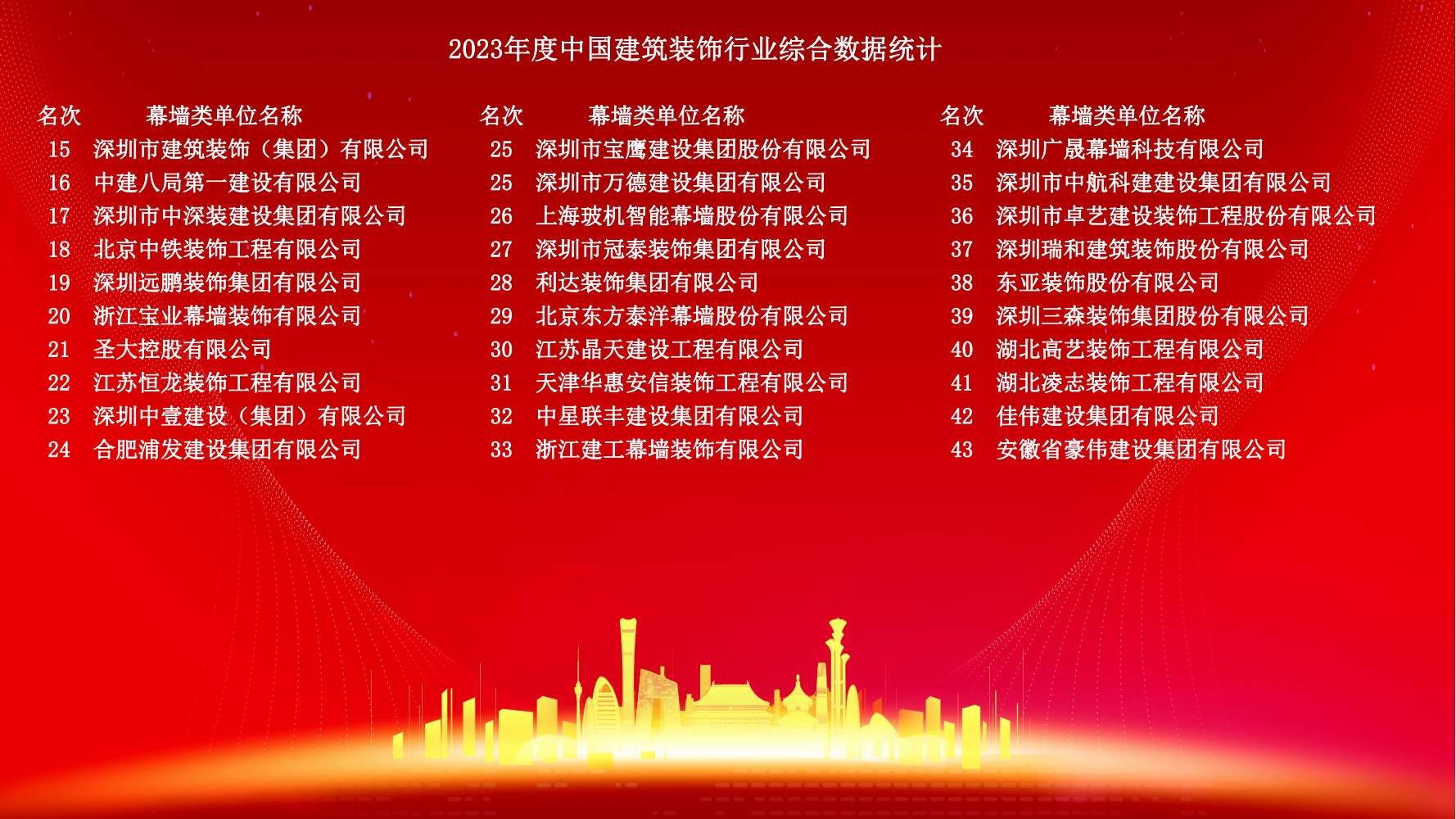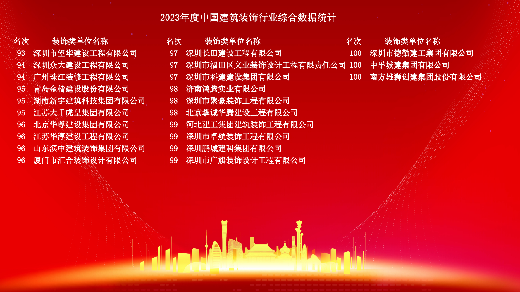12月10日,2023年度中國建筑裝飾協(xié)會行業(yè)綜合數(shù)據(jù)統(tǒng)計(jì)正式發(fā)布。詳細(xì)名單如下: